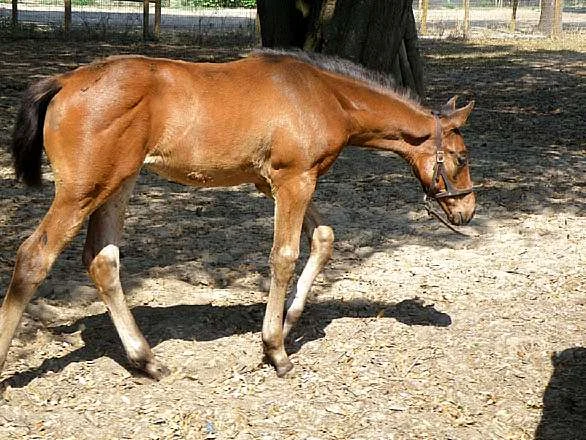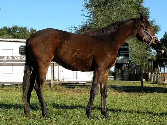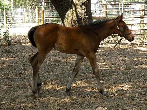 Giacasyn is a gorgeous bay filly with a slight star. She is the first foal out of the 16 hand Thoroughbred Mare Synfull Charmer, a winner herself sired by WILD SYN. Giacasyn is sired by the 2005 Kentucky Derby Winner GIACOMO!! This filly was unfortunately injured on the racetrack. She has come home and has given us a nice BIG gelding, Tree Top Tall, by Value Plus in 2016. March 1. 2019 she gave us a handsome colt by Ride On Curlin. Giacasyn is an exceptional broodmare but could also be put back under saddle as a performance horse.